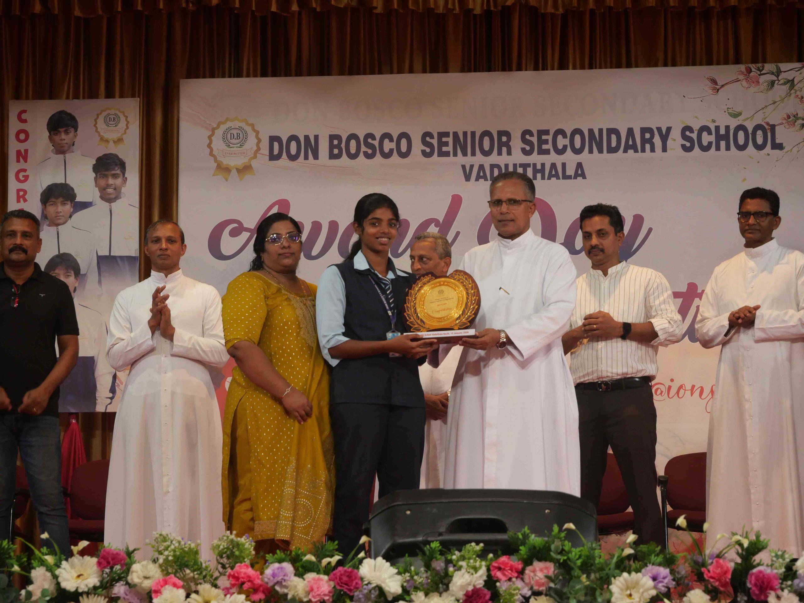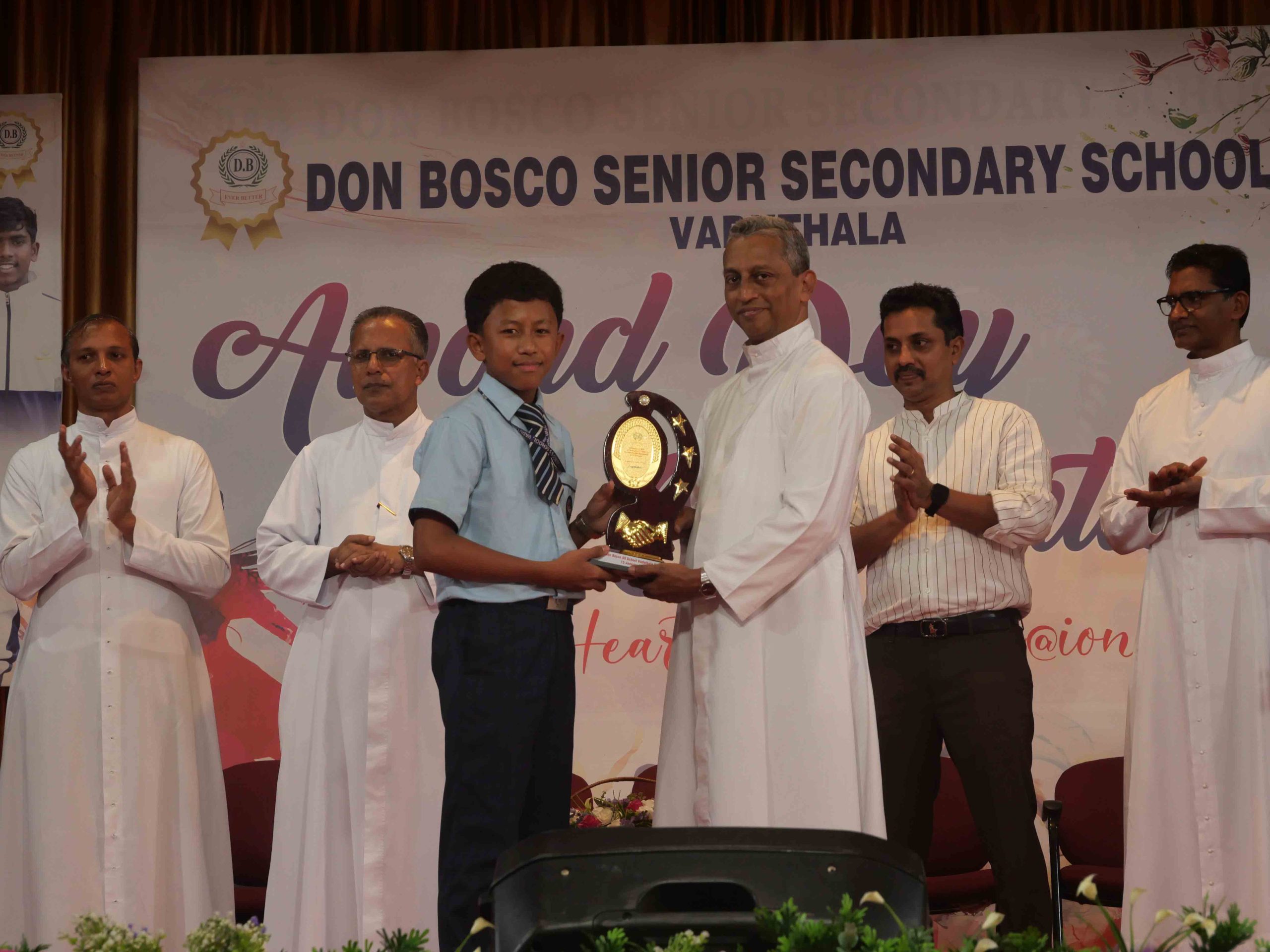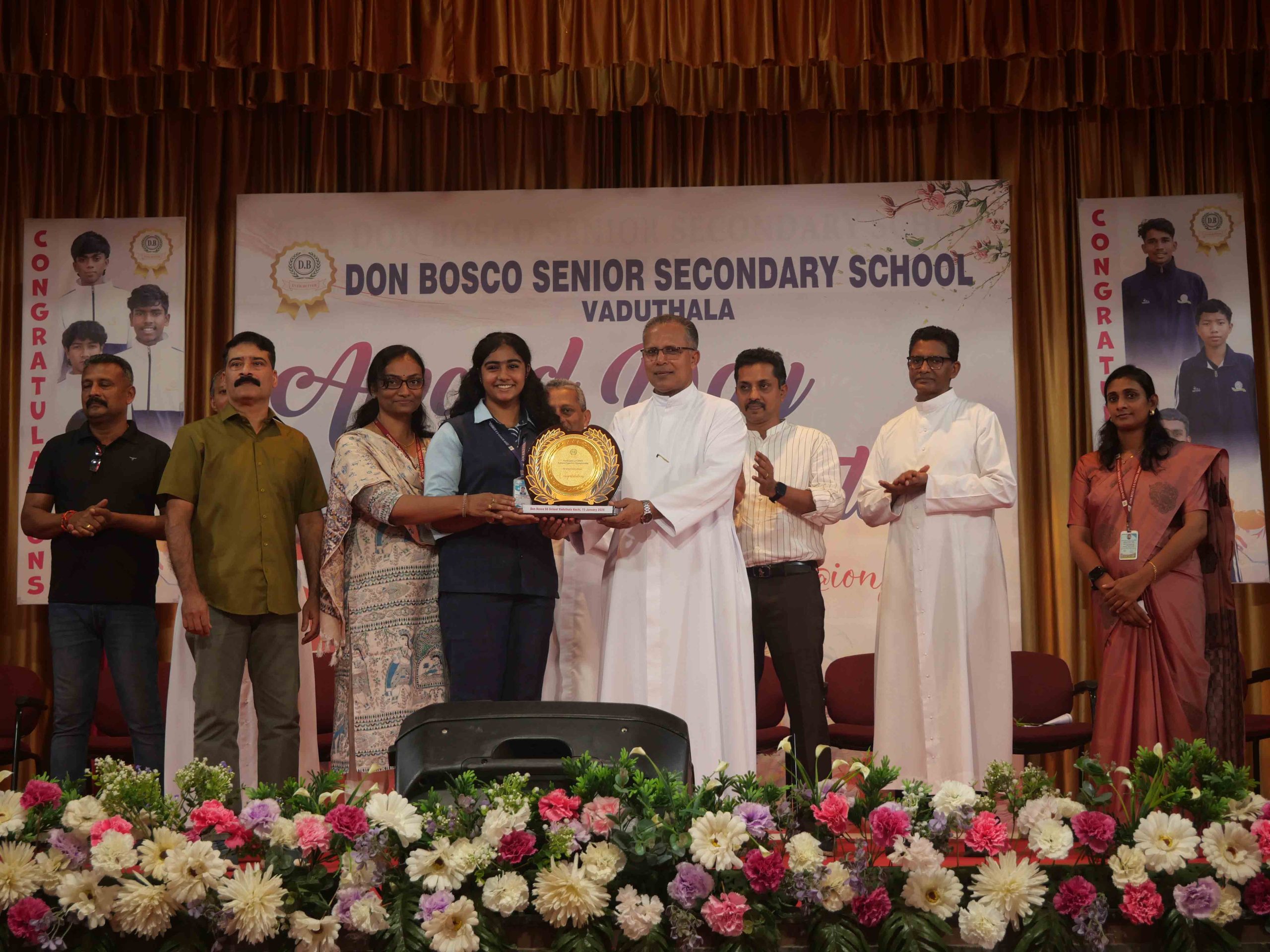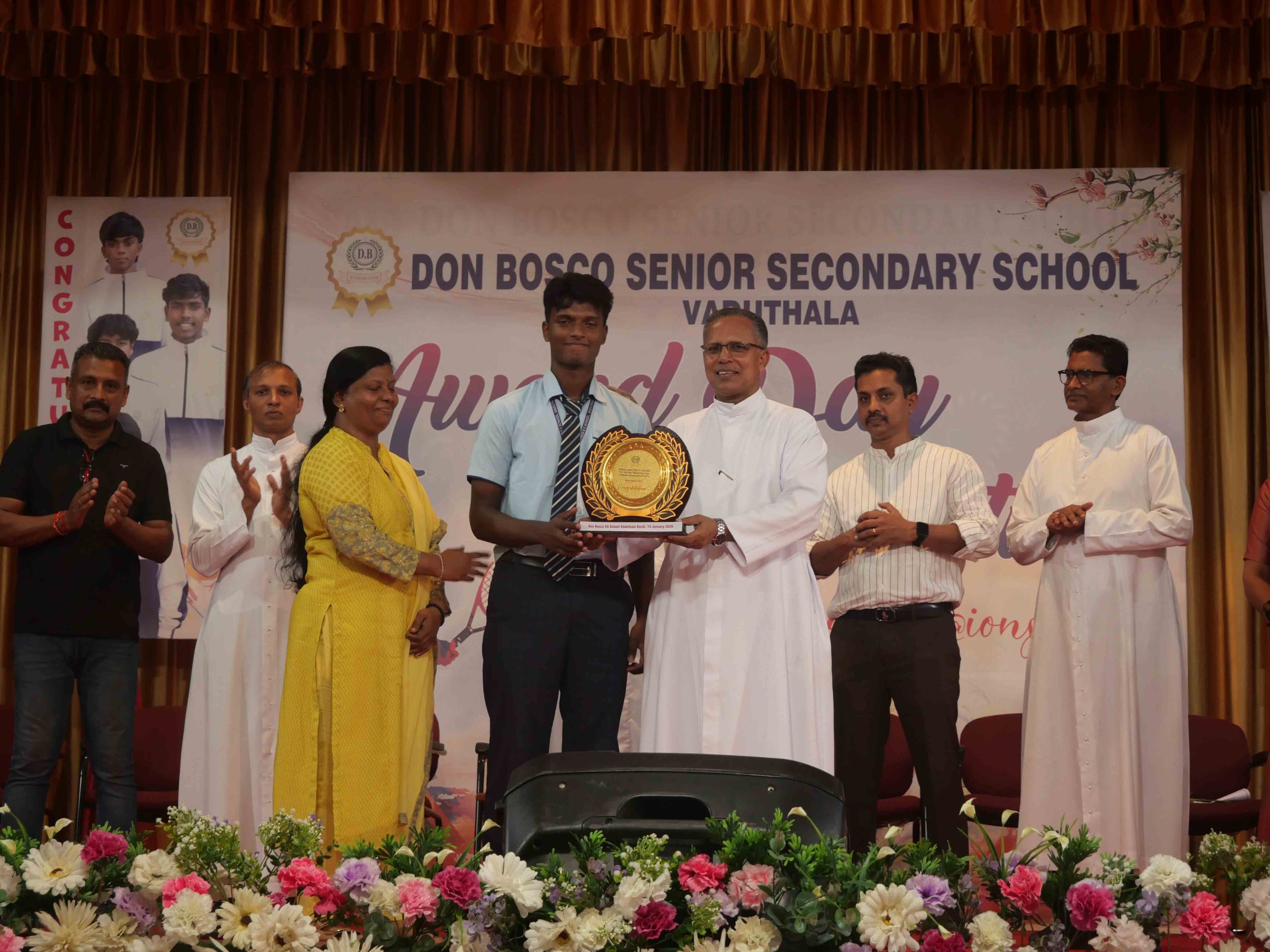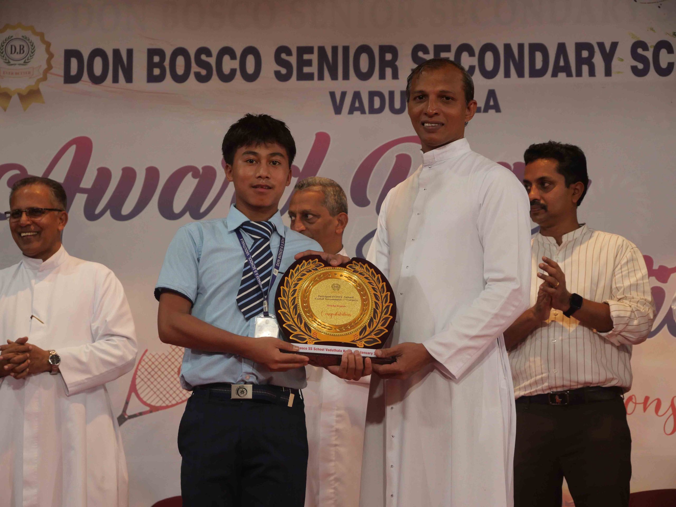 On January 15, 2026, at 10:15 AM, Don Bosco Senior Secondary School, Vaduthala, held its Award Day celebrations, an extra ordinary occasion to honour the outstanding sports and academic achievers in the presence of distinguished dignitaries such as Fr. Shibu Davis SDB (Rector & Manager), Fr. Kuriakose Shasthamkala SDB (Principal), Fr. Manuel Gilton SDB (Vice Principal), Fr.Joby Sebastian SDB (Administrator), Sri. Praveen Jolly (PTA President), Sri. Syamnadh G (School Coordinator), and Mrs. Shigi Varghese (Programme Coordinator).