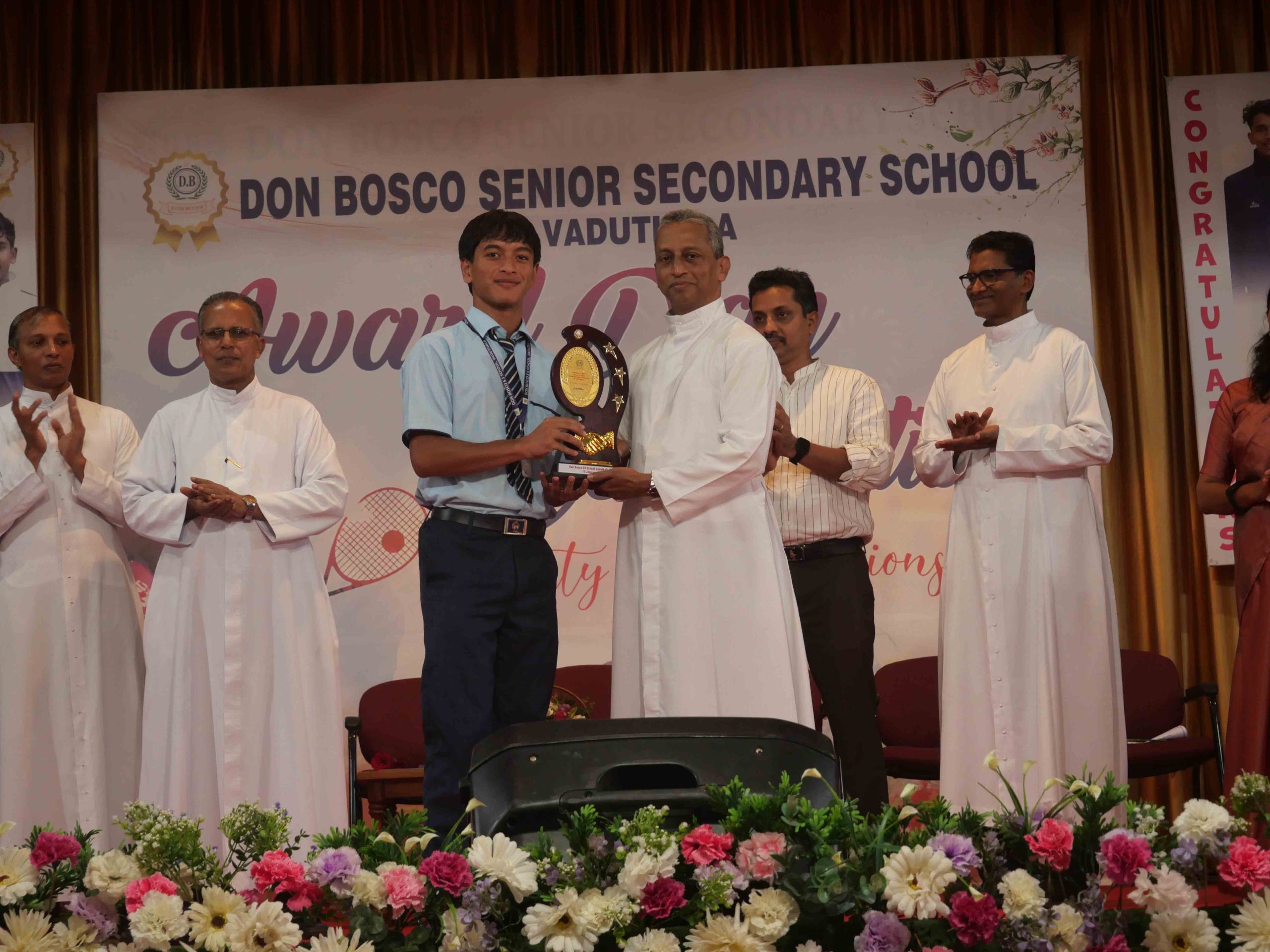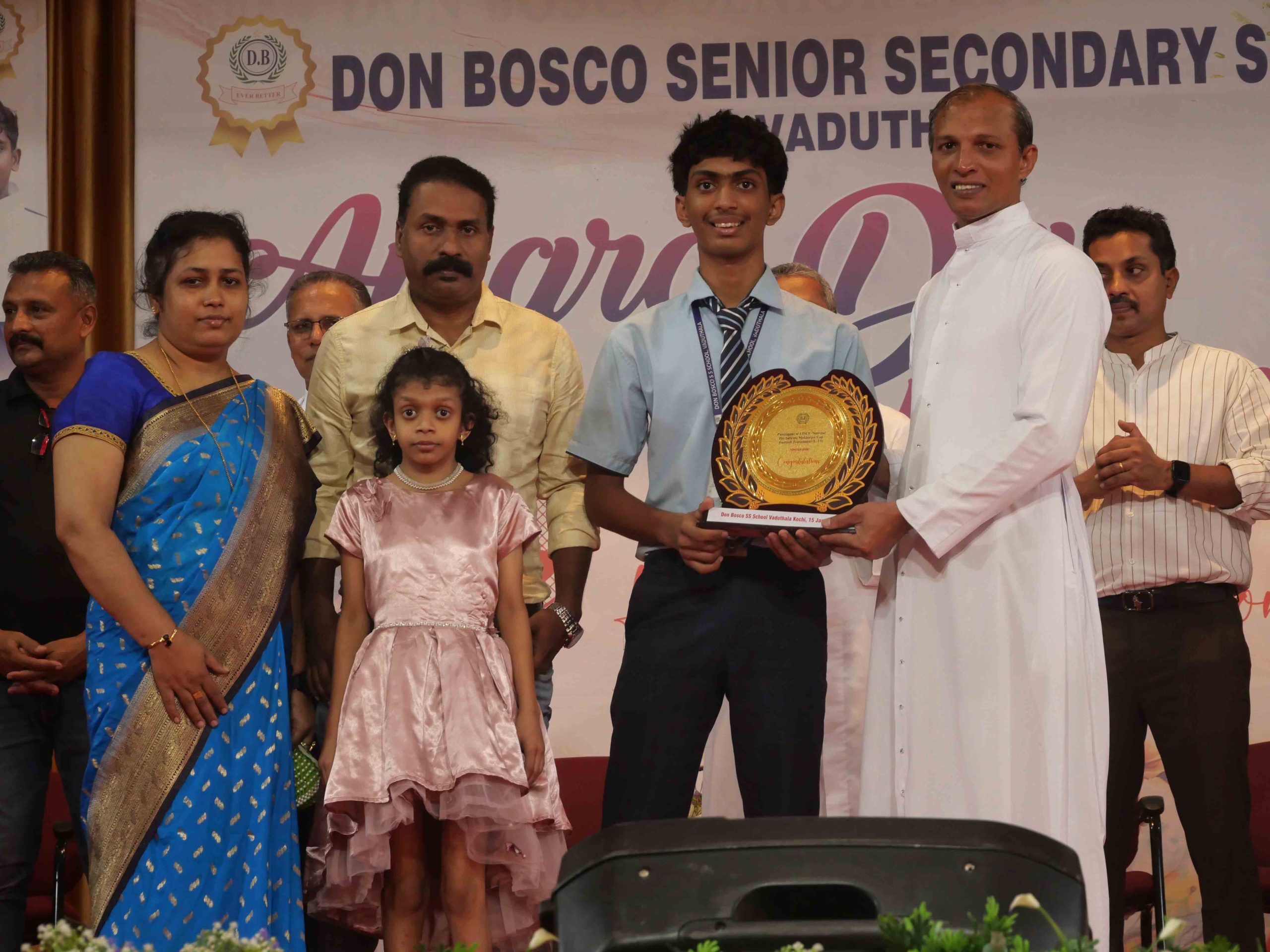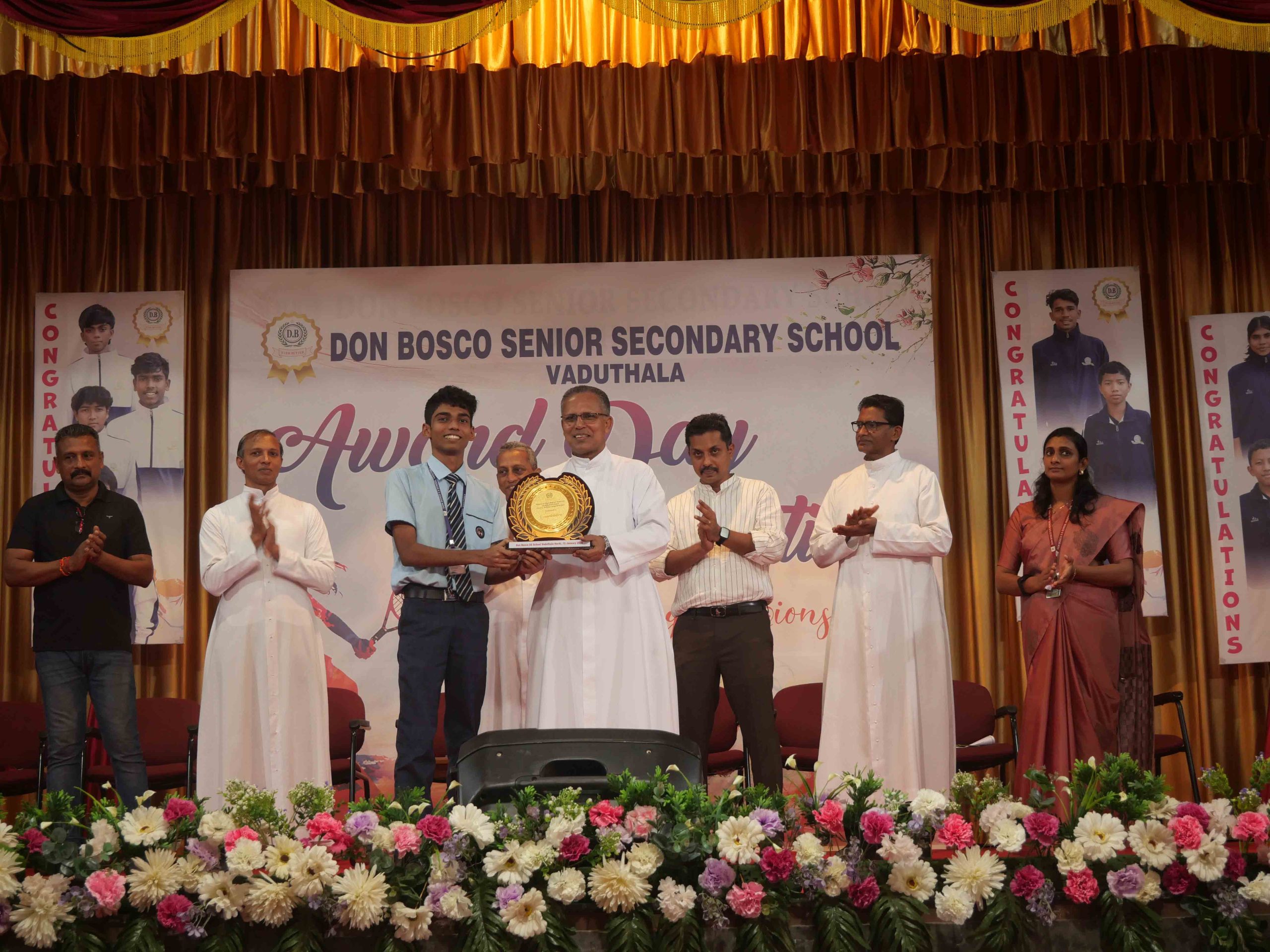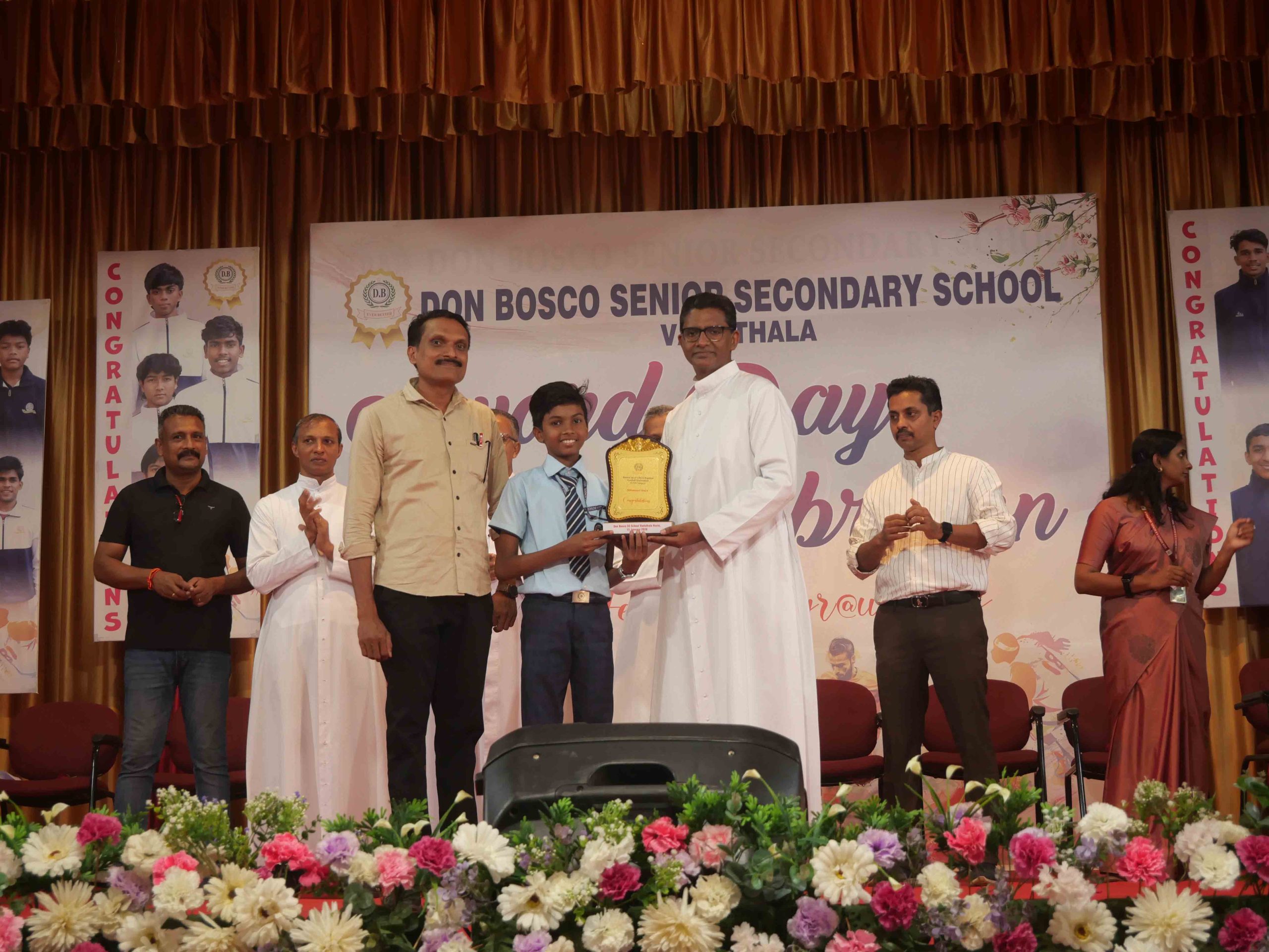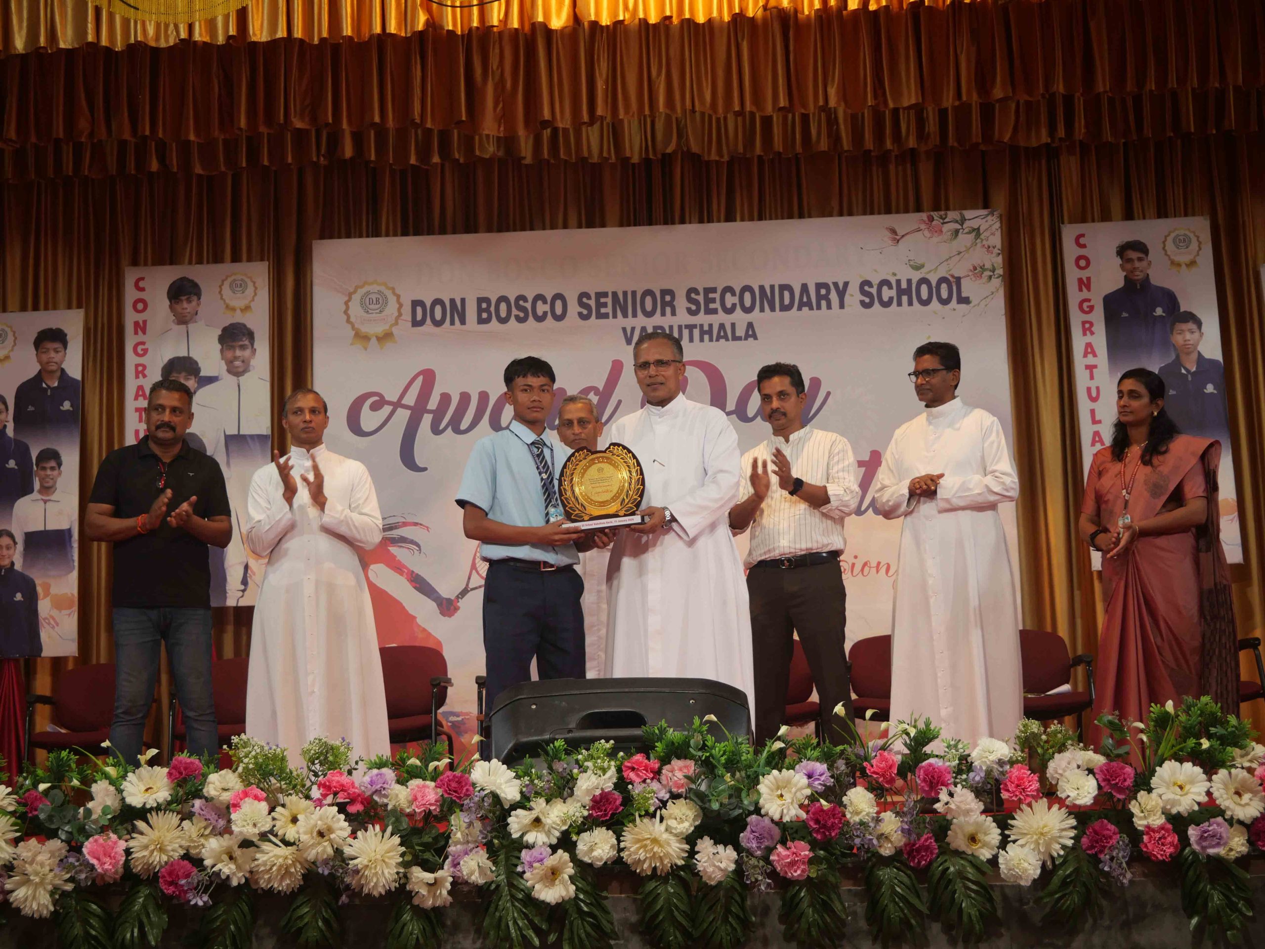 On January 15, 2026, at 10:15 AM, Don Bosco Senior Secondary School, Vaduthala, held its Award Day celebrations, an extra ordinary occasion to honour the outstanding sports and academic achievers in the presence of distinguished dignitaries such as Fr. Shibu Davis SDB (Rector & Manager), Fr. Kuriakose Shasthamkala SDB (Principal), Fr. Manuel Gilton SDB (Vice Principal), Fr.Joby Sebastian SDB (Administrator), Sri. Praveen Jolly (PTA President), Sri. Syamnadh G (School Coordinator), and Mrs. Shigi Varghese (Programme Coordinator).