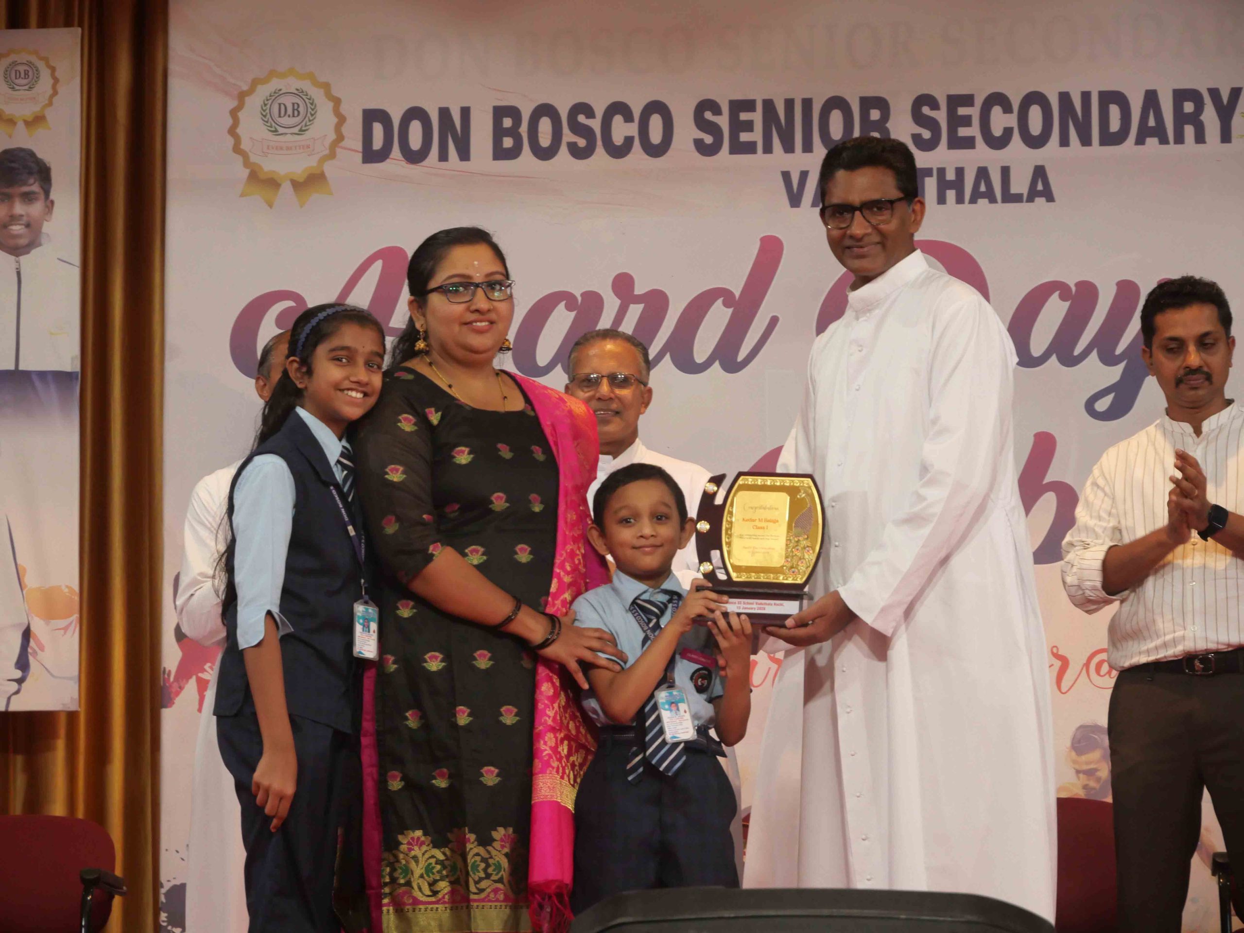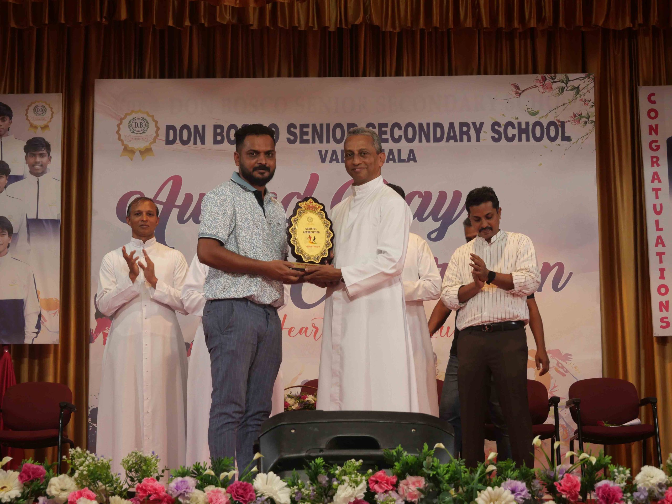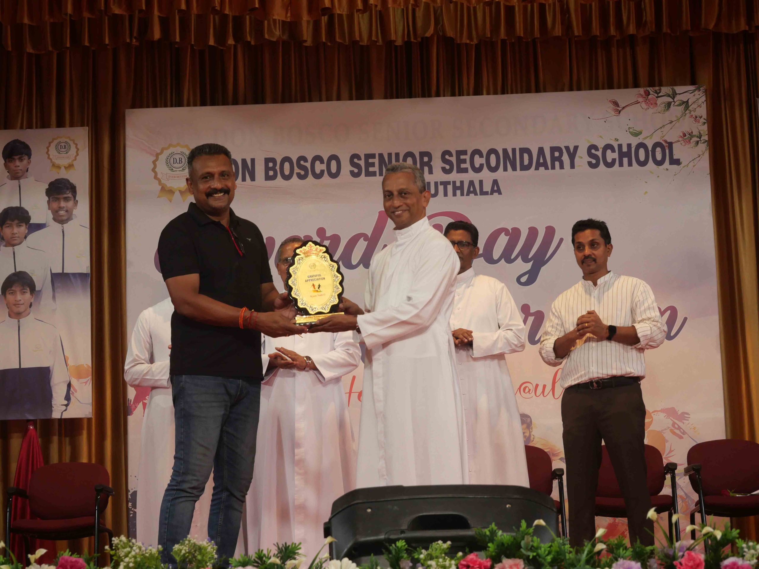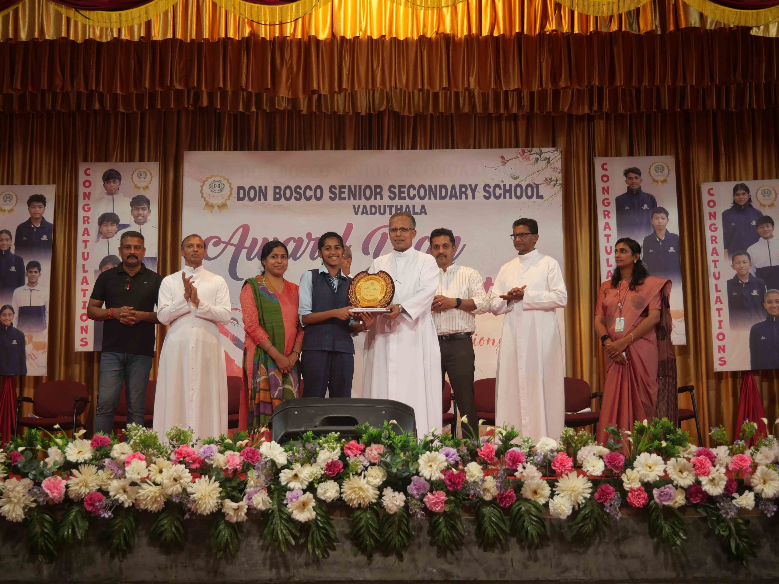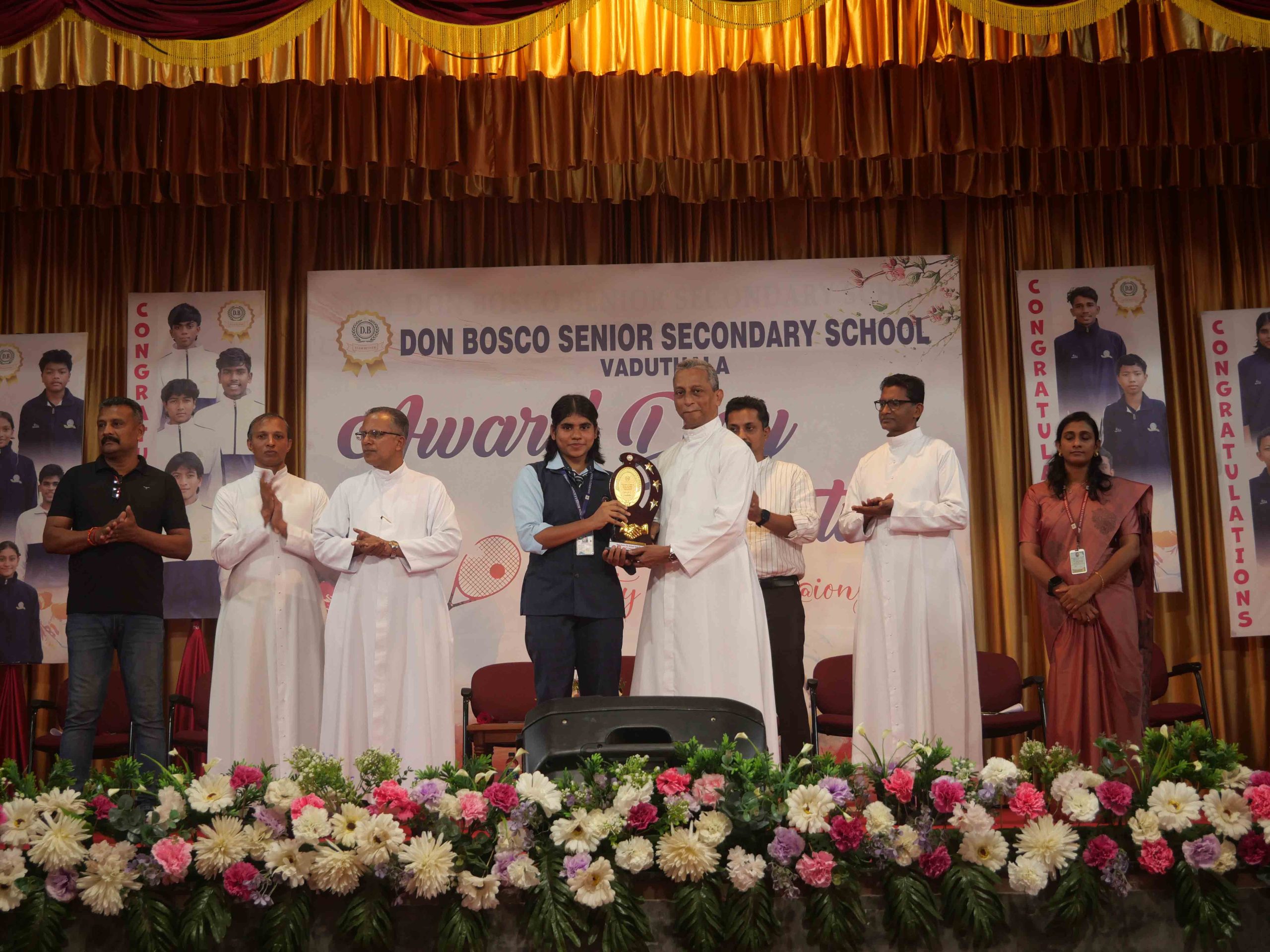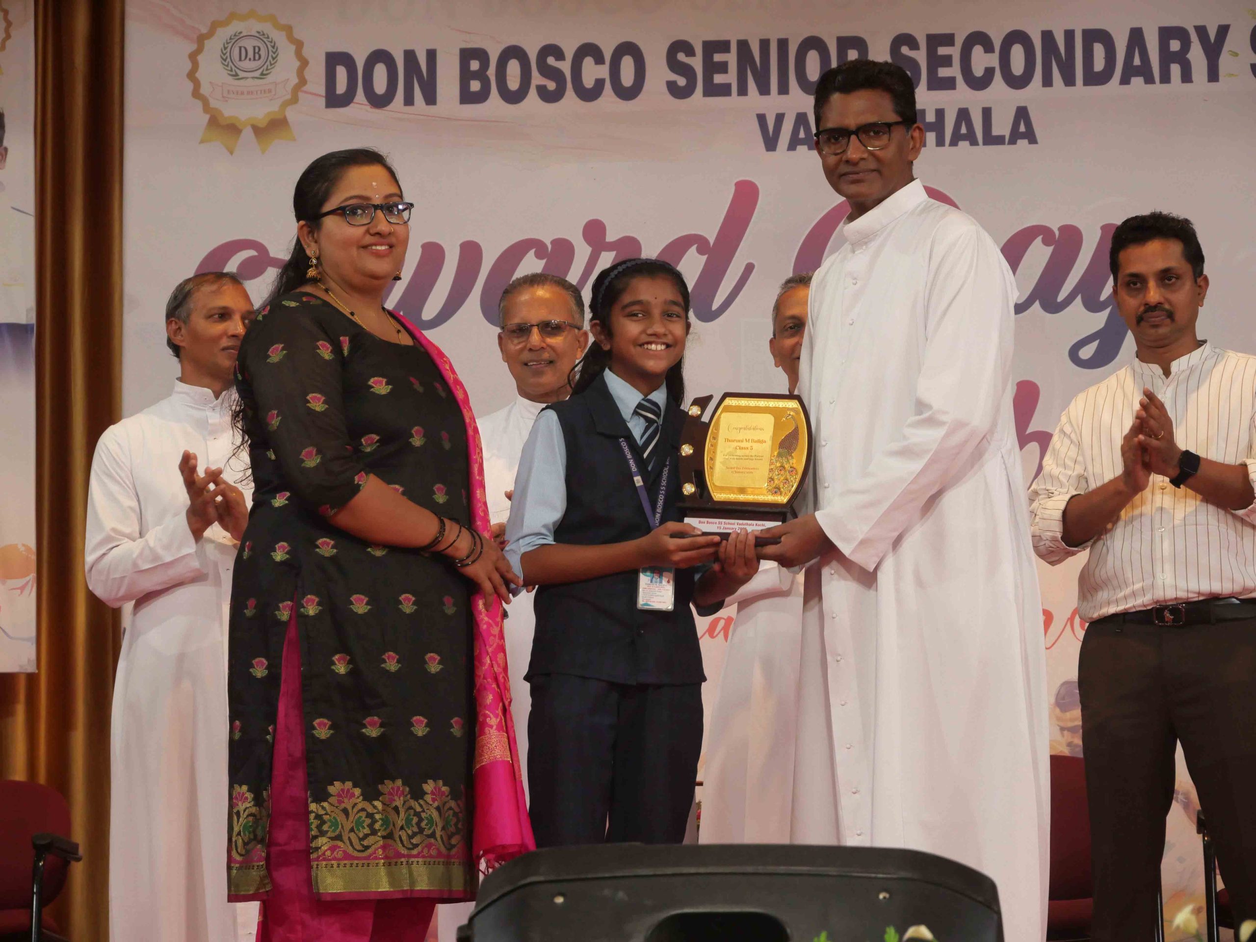 On January 15, 2026, at 10:15 AM, Don Bosco Senior Secondary School, Vaduthala, held its Award Day celebrations, an extra ordinary occasion to honour the outstanding sports and academic achievers in the presence of distinguished dignitaries such as Fr. Shibu Davis SDB (Rector & Manager), Fr. Kuriakose Shasthamkala SDB (Principal), Fr. Manuel Gilton SDB (Vice Principal), Fr.Joby Sebastian SDB (Administrator), Sri. Praveen Jolly (PTA President), Sri. Syamnadh G (School Coordinator), and Mrs. Shigi Varghese (Programme Coordinator).