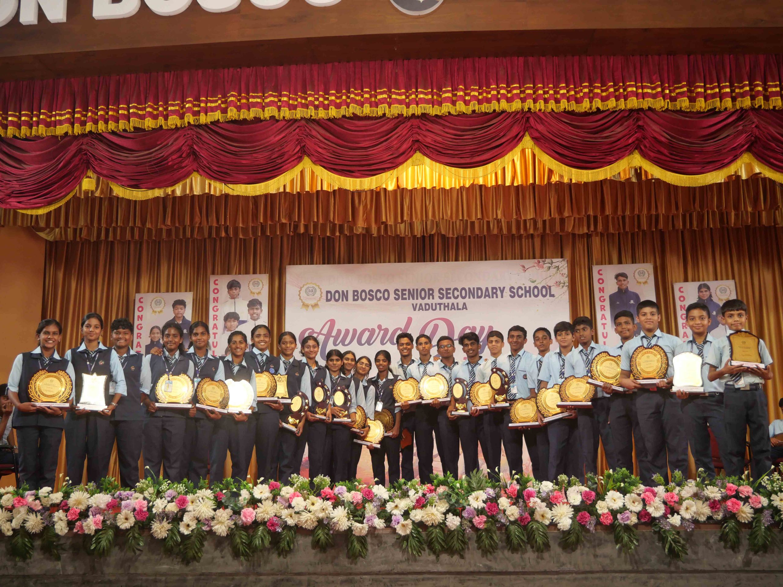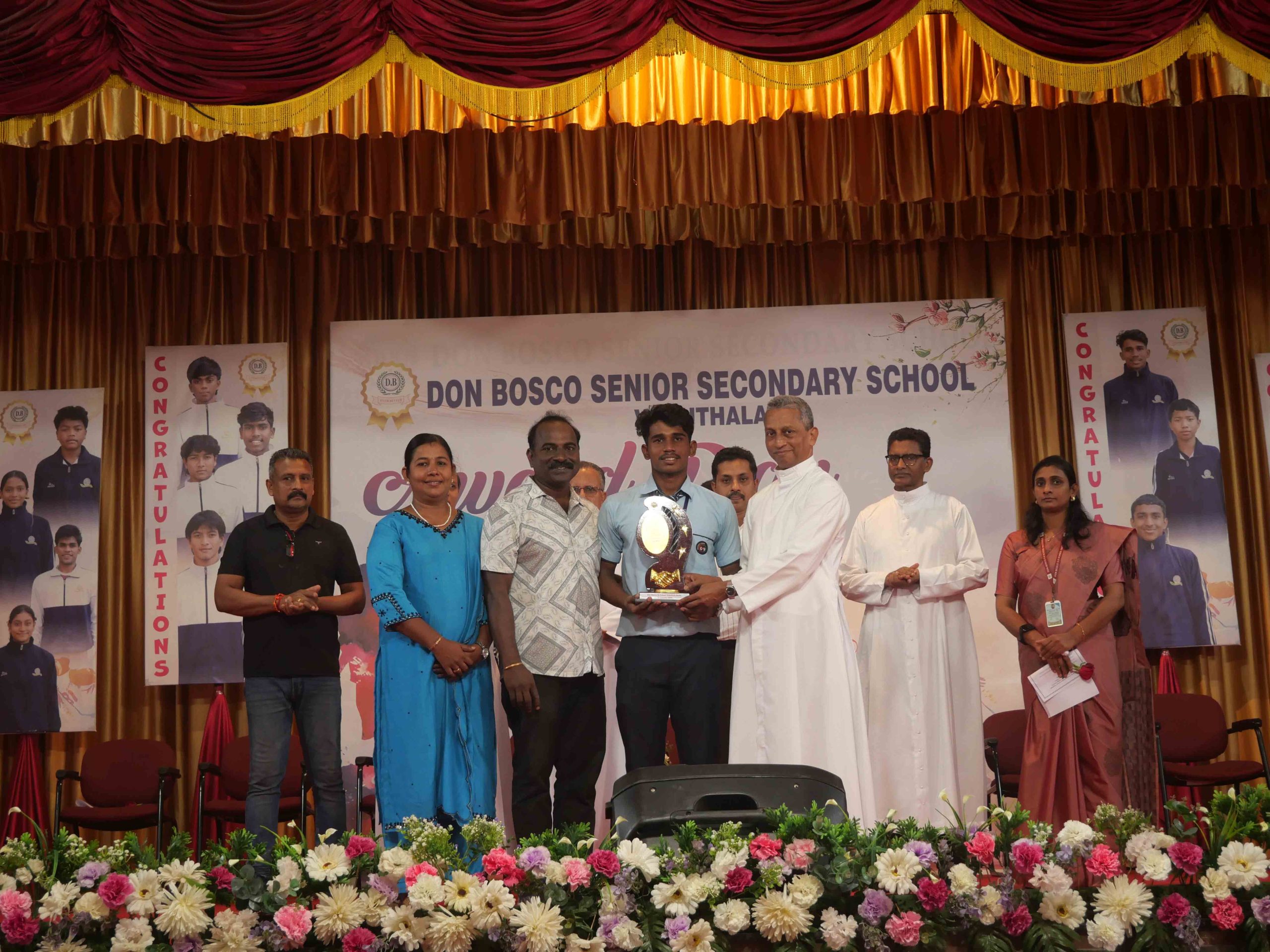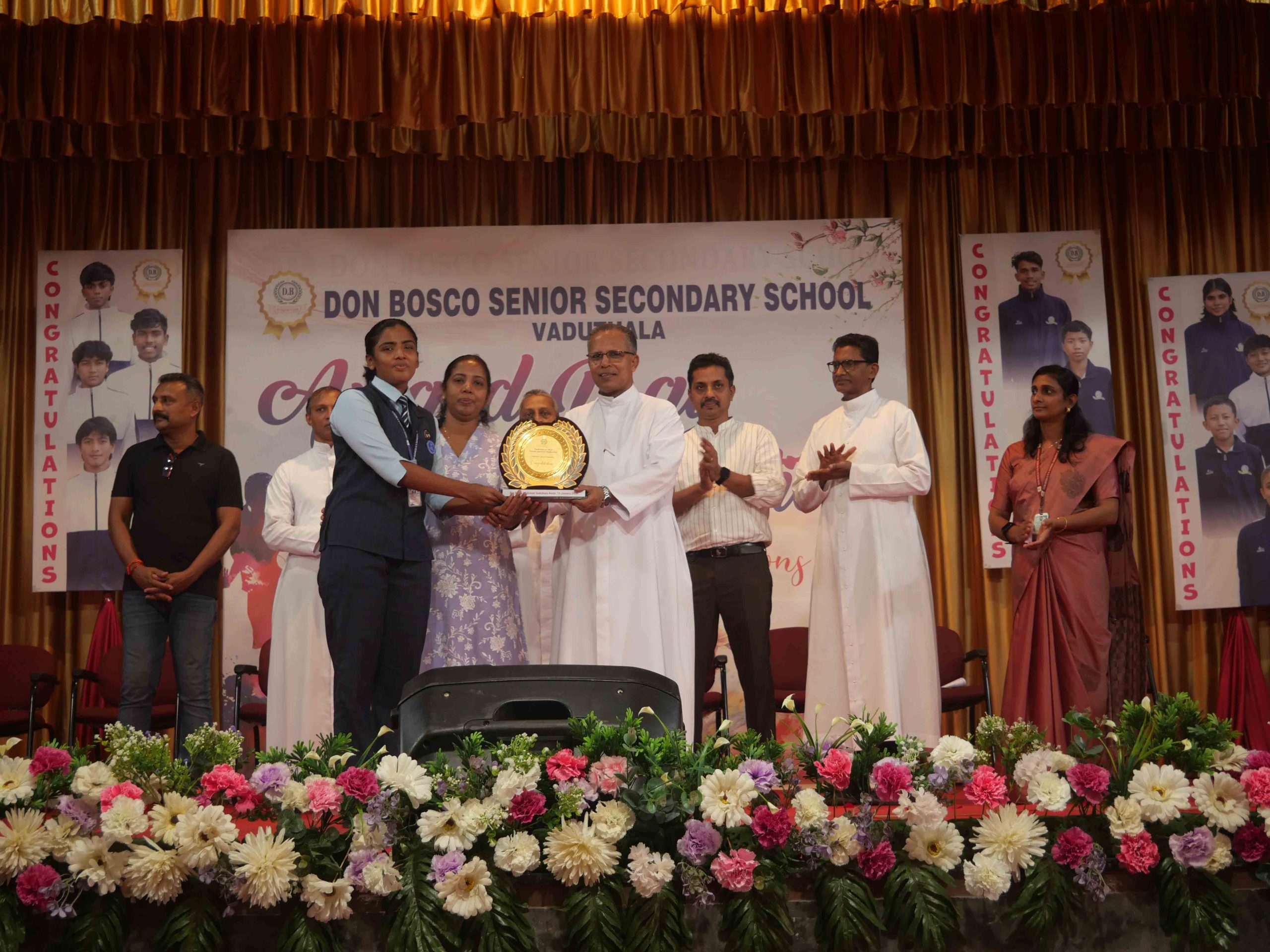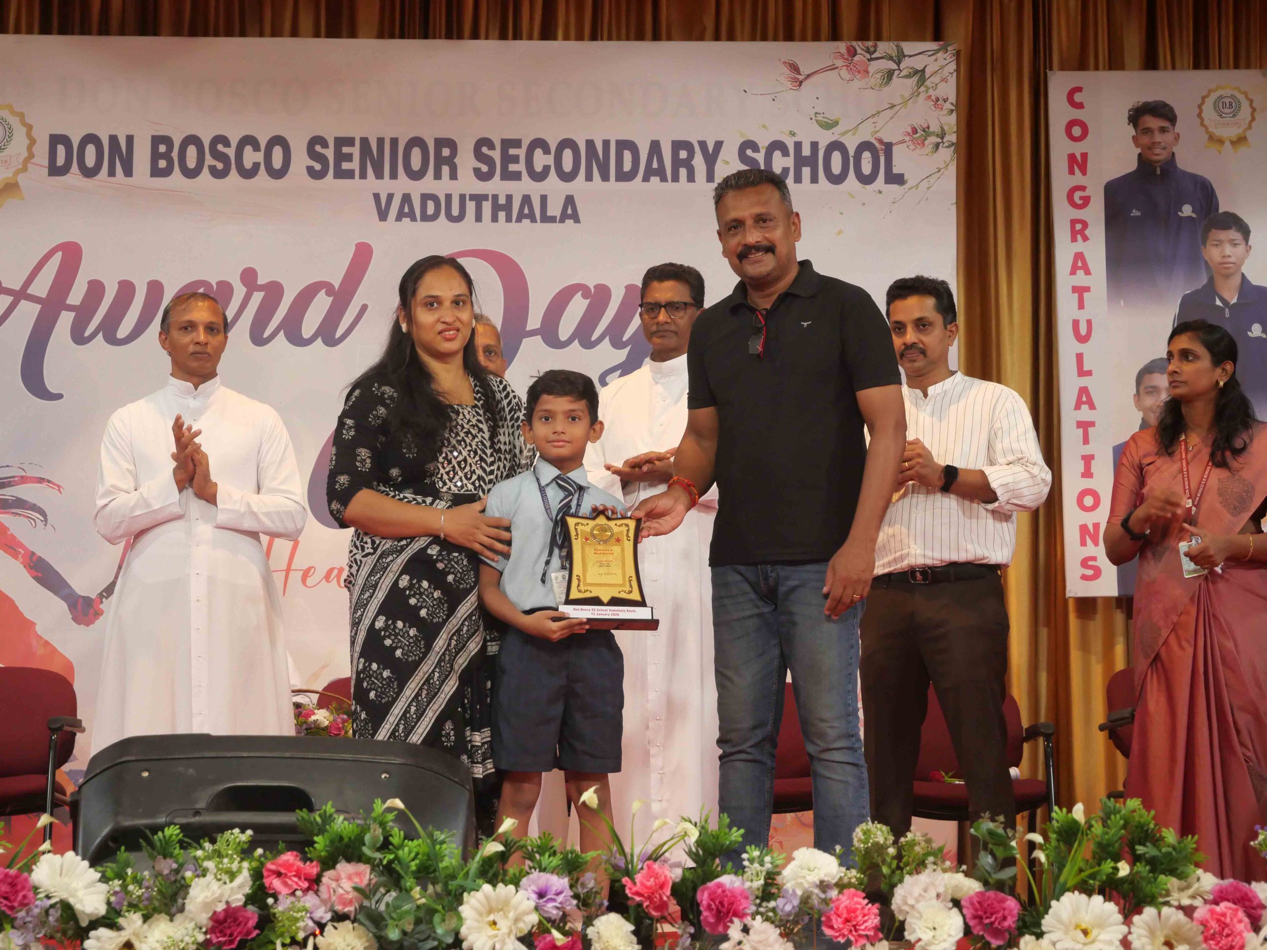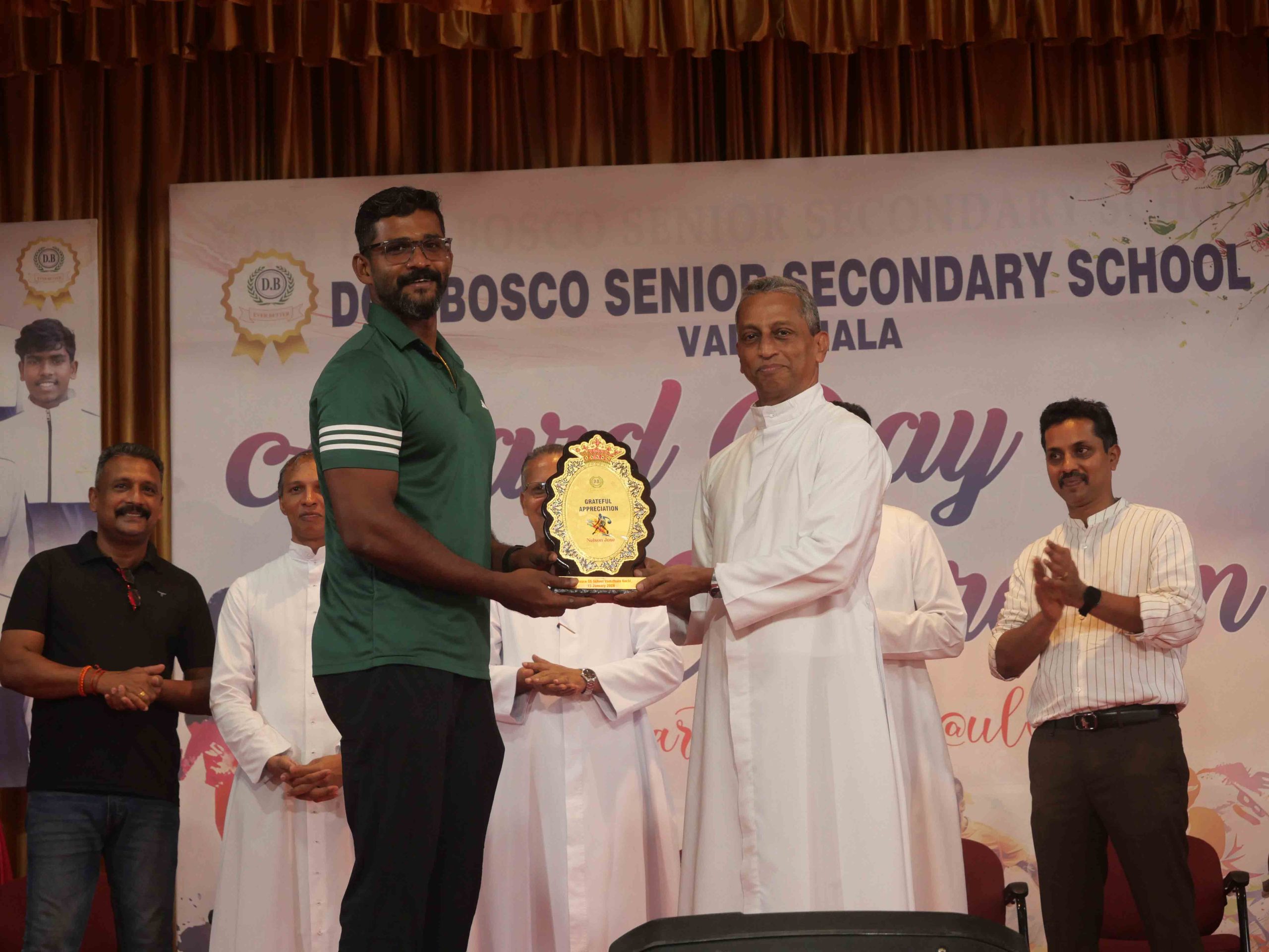 On January 15, 2026, at 10:15 AM, Don Bosco Senior Secondary School, Vaduthala, held its Award Day celebrations, an extra ordinary occasion to honour the outstanding sports and academic achievers in the presence of distinguished dignitaries such as Fr. Shibu Davis SDB (Rector & Manager), Fr. Kuriakose Shasthamkala SDB (Principal), Fr. Manuel Gilton SDB (Vice Principal), Fr.Joby Sebastian SDB (Administrator), Sri. Praveen Jolly (PTA President), Sri. Syamnadh G (School Coordinator), and Mrs. Shigi Varghese (Programme Coordinator).