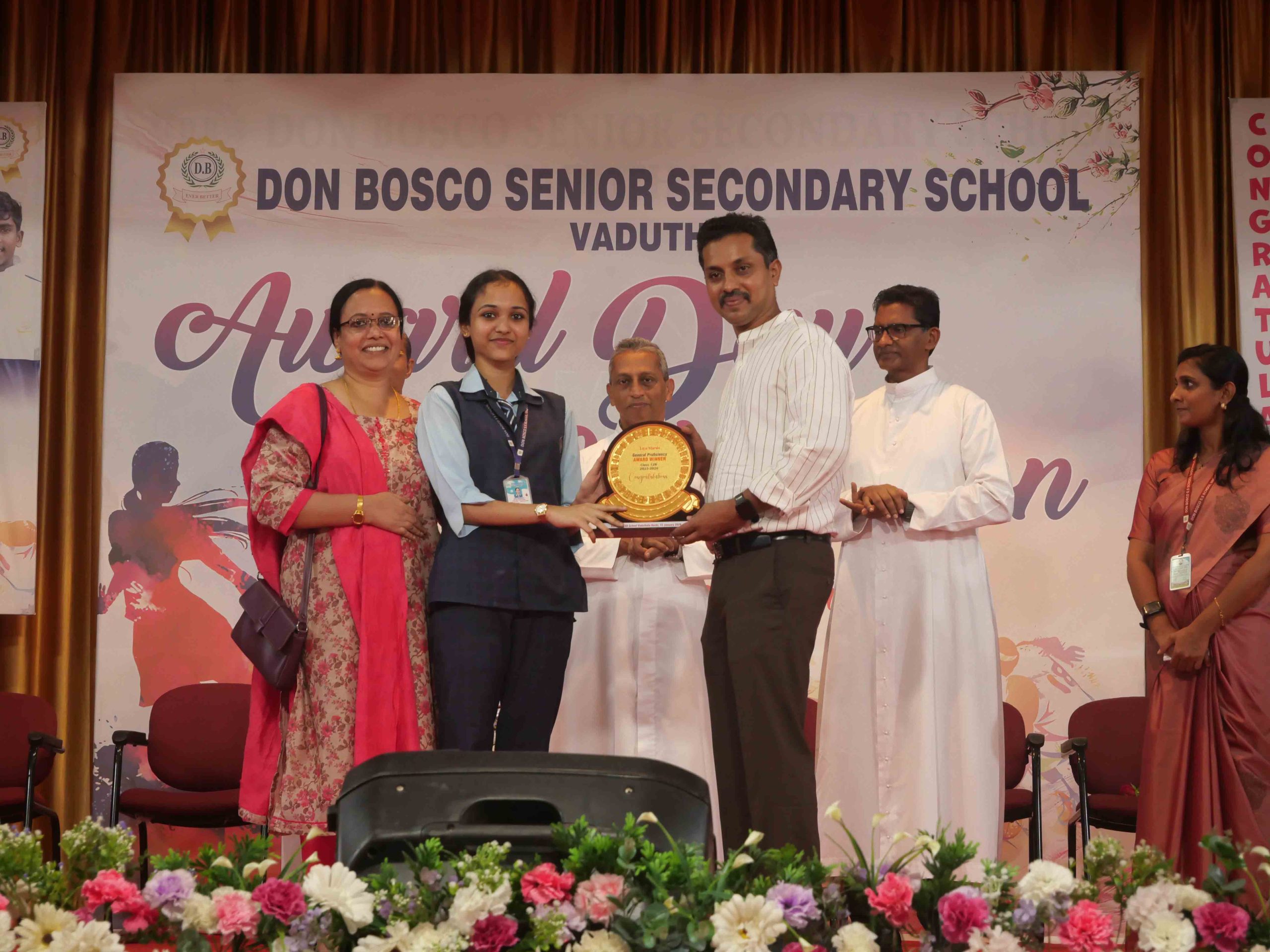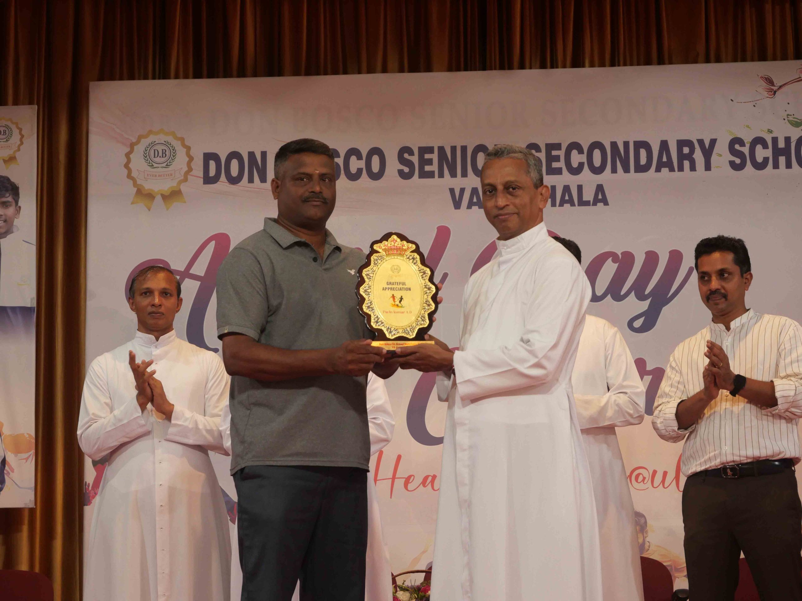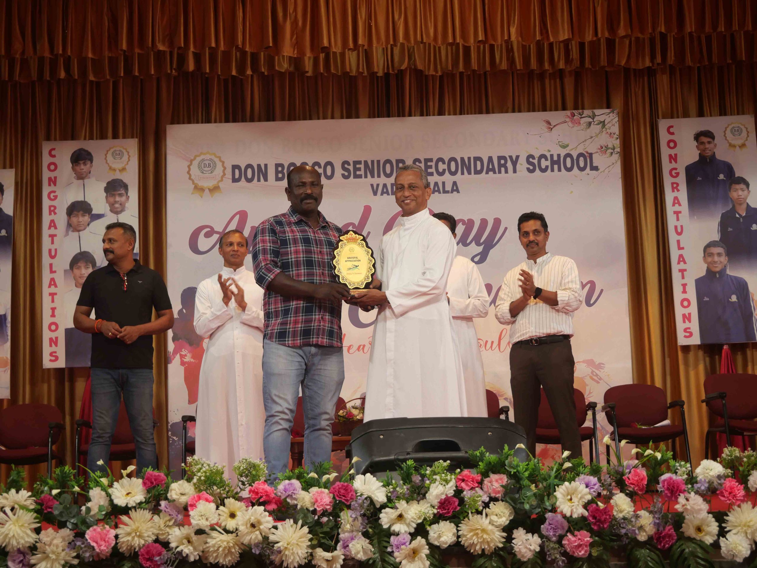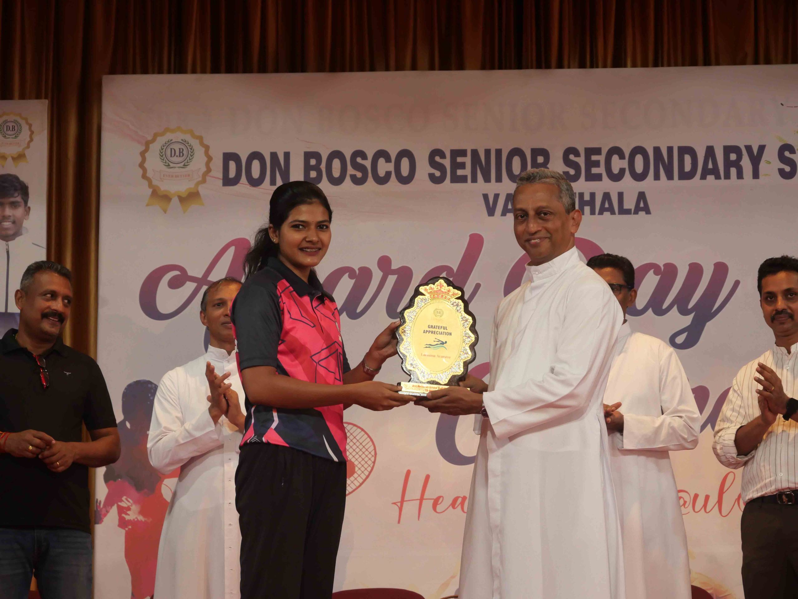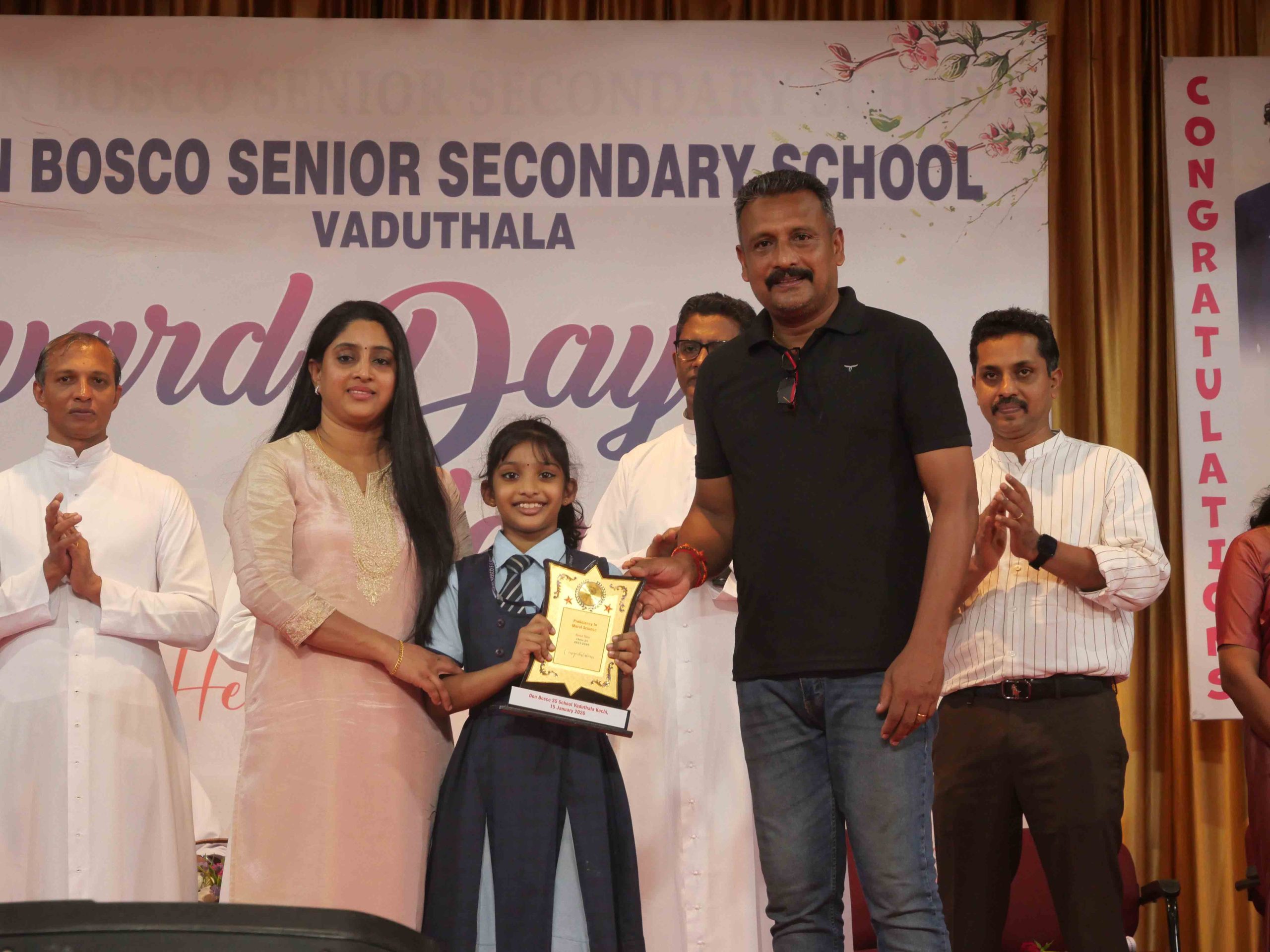 On January 15, 2026, at 10:15 AM, Don Bosco Senior Secondary School, Vaduthala, held its Award Day celebrations, an extra ordinary occasion to honour the outstanding sports and academic achievers in the presence of distinguished dignitaries such as Fr. Shibu Davis SDB (Rector & Manager), Fr. Kuriakose Shasthamkala SDB (Principal), Fr. Manuel Gilton SDB (Vice Principal), Fr.Joby Sebastian SDB (Administrator), Sri. Praveen Jolly (PTA President), Sri. Syamnadh G (School Coordinator), and Mrs. Shigi Varghese (Programme Coordinator).