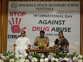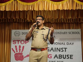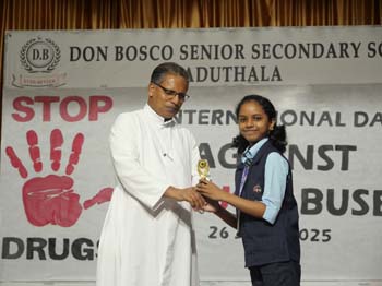 On June 26, 2025, at 1 p.m. we observed International Day Against Drug Abuse and illicit Trafficking through a multi-faceted programme. Following the introduction, Mr. Shihab V.S, ASI and Assistant Coordinator of the Social Policing Wing, Ernakulam Rural, addressed the audience. His engaging and enlightening interaction highlighted the disastrous impact of drugs. A skit by NCC students, a video presentation and the prize distribution for Anti-Drug Day competitions were the other highlights. As the final act, the oath-taking echoed with determination in every child’s voice.