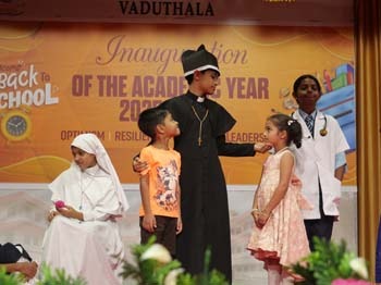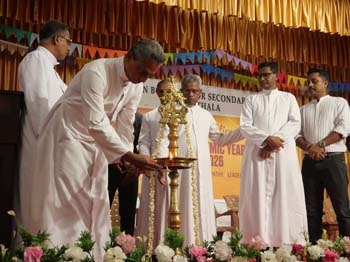 On June 2, 2025, at 8:30 a.m., the Don Bosco campus came alive with a spirit of reverence and renewal as the Academic Year 2025–2026 was officially inaugurated. The ceremony unfolded with a thoughtful theme depiction, the sacred Vidyarambham ceremony, scripture reading, and a solemn offertory, invoking blessings for the journey ahead. The occasion was graced by a distinguished panel of dignitaries: Rev. Fr. Shibu Davis SDB (Rector & Manager), Rev. Fr. Joby Mattappallil SDB (Administrator), Rev. Fr. Kuriakose Shasthamkala SDB (Principal), Rev. Fr. Manuel Gilton SDB (LP In-charge), Rev. Fr. Sebastian Mundakamchirayil SDB (Principal, DB ITI), Rev. Fr. John Muttathuparambil SDB (Youth Director, Kerala), Bro. Agnel Anthony (Student Brother), Mr. Praveen Jolly (PTA President), Mr. Syamnadh G (School Coordinator), and Mrs. Dayana Ann Dominic (Programme Coordinator). Their presence lent solemnity and strength to the school’s renewed commitment to learning, values, and holistic growth.